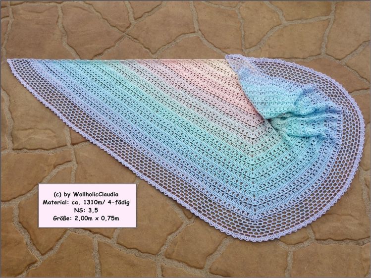 Beide Varianten sind in beliebiger Größe, Garn- und Nadelstärke machbar. Damit die Tücher eine akzeptable Größe erreichen empfehle ich, mindestens 1000m Garn zu verwenden.