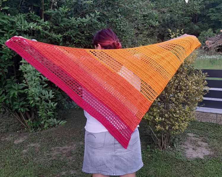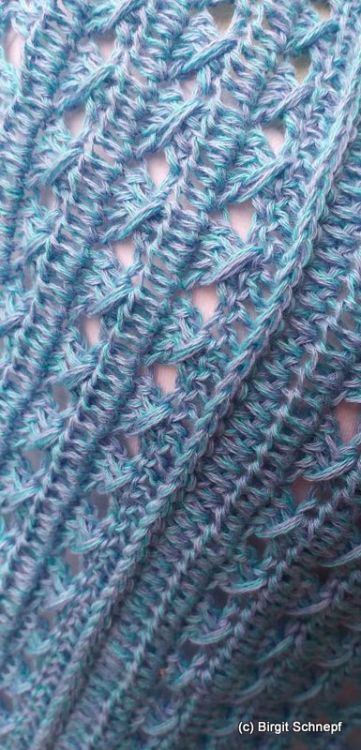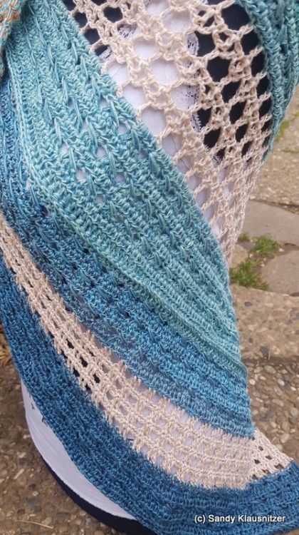 mit 1000m Farbverlaufsgarn 3 fädig und einer Häkenadel Gr. 3,5 wurde mein Tuch 155 x 88 cm groß