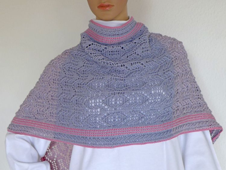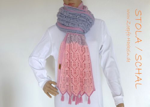 Die Stola kann beliebig in der Breite und Länge den eigenen Wünschen angepasst werden und sich somit zu einem Schal oder Loop verwandeln. In der Anleitung sind einige Beispiele mit Materialangaben aufgeführt.