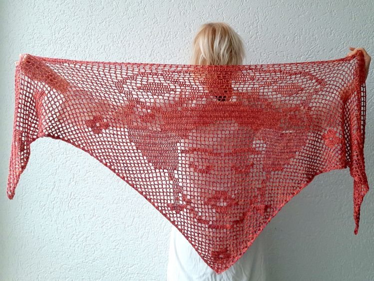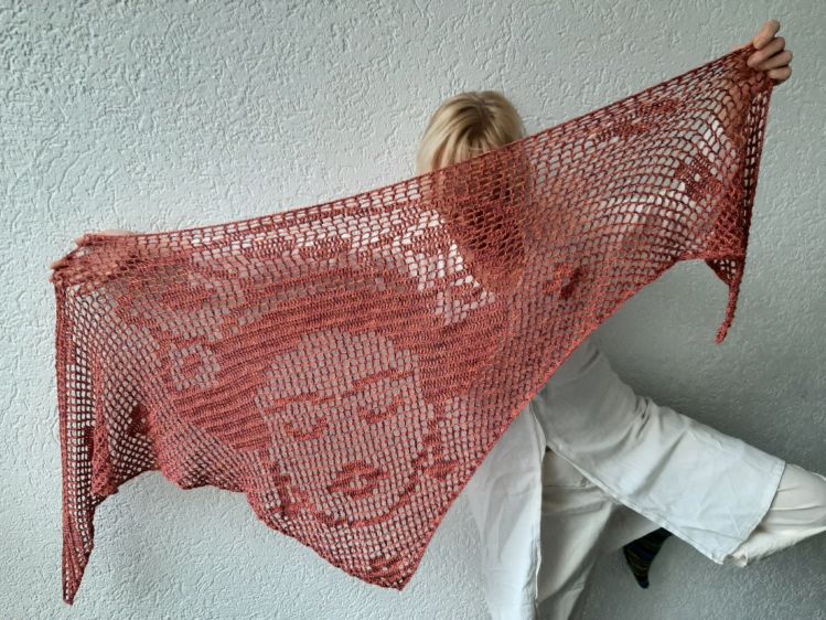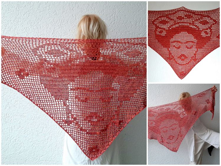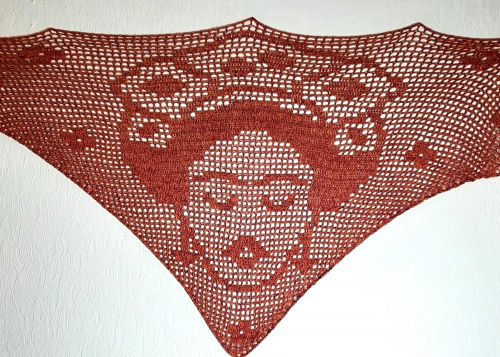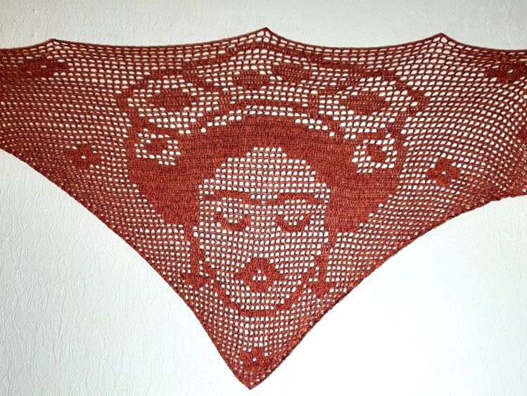 Ich möchte Euch das Motivtuch "Fräulein Ida" vorstellen. Es ist ein Lieblingstuch von mir. Das Motiv ist ein Frauenkopf, umrandet mit Blumen. Ein Hingucker! Das Dreieckstuch wird von der unteren Spitze nach oben, in Filet-Technik, gearbeitet. Filethäkeln ist gerade für Anfänger sehr gut geeignet. Aber Vorsicht! Suchtgefahr!