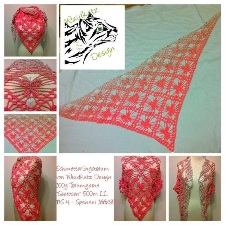 Gehäkeltes Dreieckstuch mit Schmetterlingen
