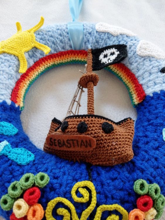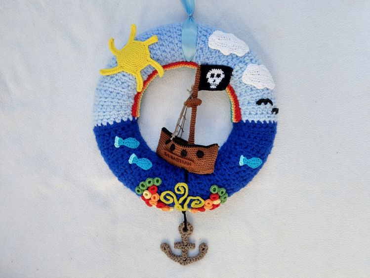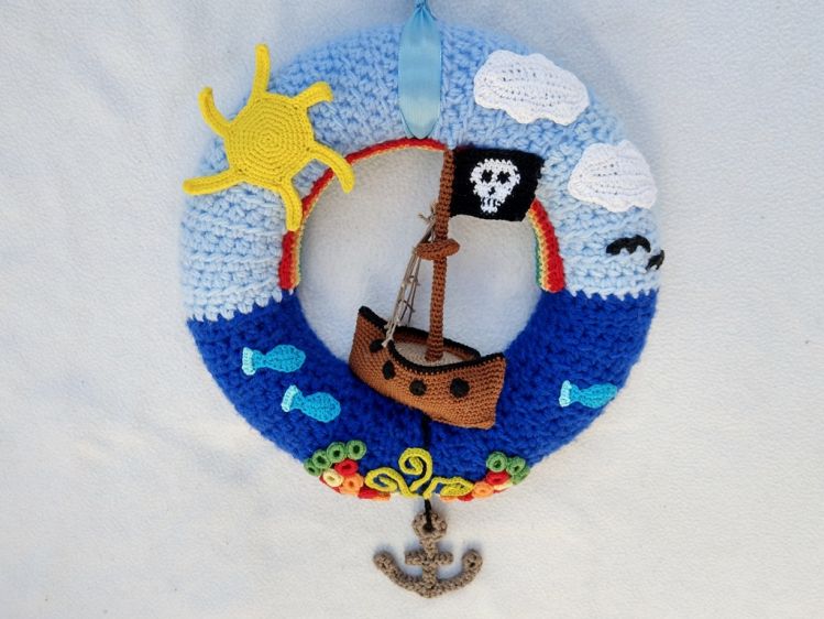 Was gibt es schöneres, als etwas Selbstgehäkeltes zur Geburt/Taufe/Geburtstag oder einfach auch so zu verschenken. Hier kannst Du eine tolle Türkranzankeitung für kleine Piraten erwerben.