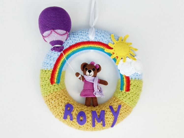 Auf 24 Seiten und 63 Fotos erkläre ich Dir die Nacharbeitung von diesem süßen Türkranz und zeige Dir eine Alternative ohne Kranz (eher für kurze Namen geeignet - siehe Fotos) Außerdem bekommst Du zusätzlich mit Kauf die Anleitung der Weihnachtsbärlis.