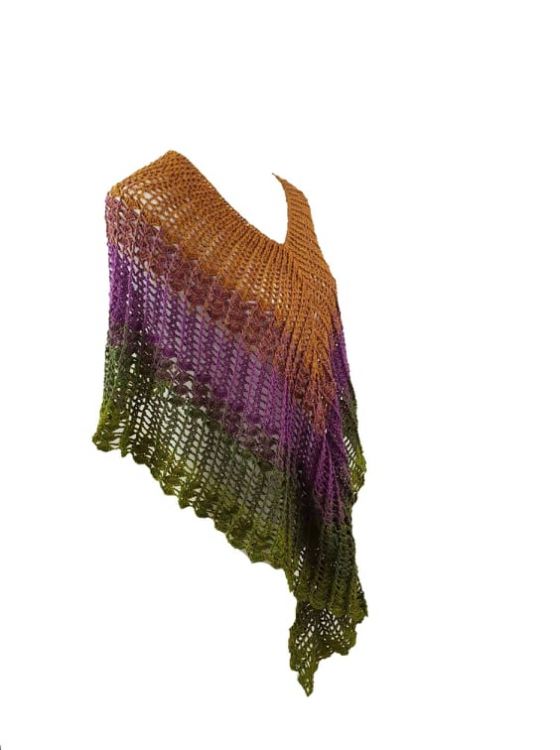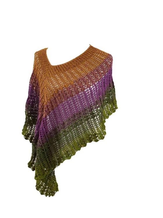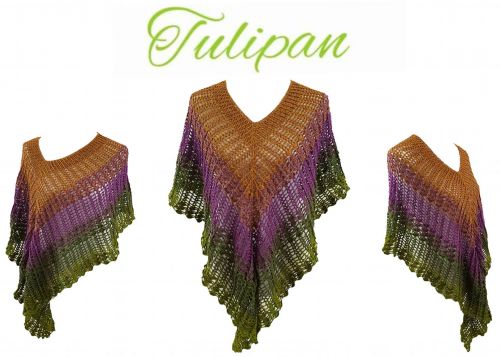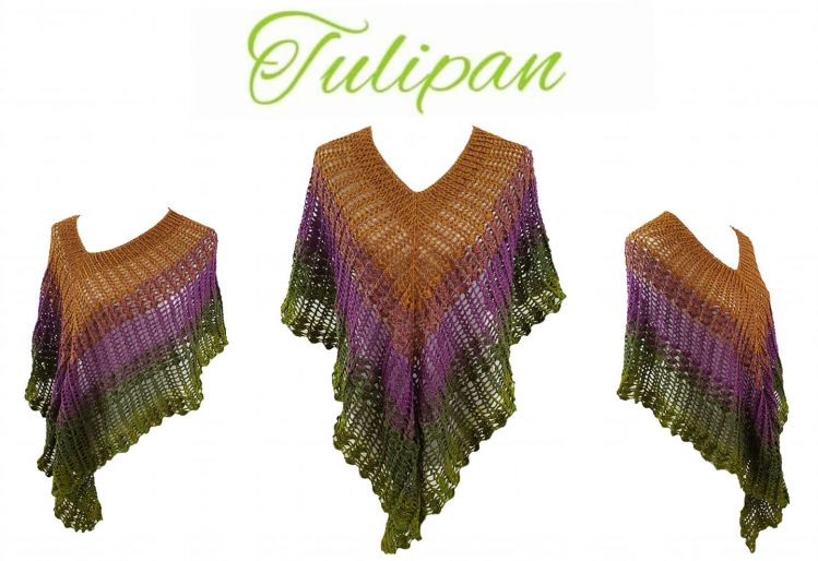 Tulipan, ein Meer aus Tulpen. Diese wunderschöne und vielseitige Poncho ist besonders für Anfänger geeignet. Sie lässt sich auch sehr schön als Tuch, Stola aber auch als Mantel tragen.