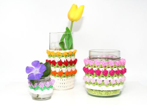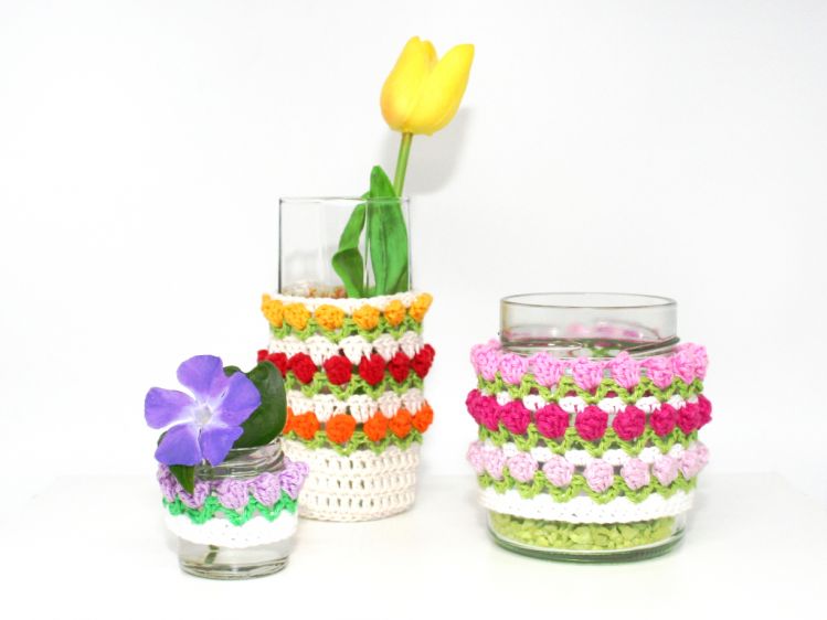 Gib Gläsern, Dosen, Flaschen, Kerzen ein neues Aussehen mit diesen schönen Tulpen-Hüllen.
