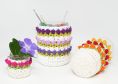 Verwendet werden hier: Fadenring, Luftmaschen, Kettmaschen, feste Maschen, Stäbchen, Zunahmen und (unsichtbare) Abnahmen, häkeln in hinterer Schlaufe, Wechseln der Garnfarbe – wird erklärt.