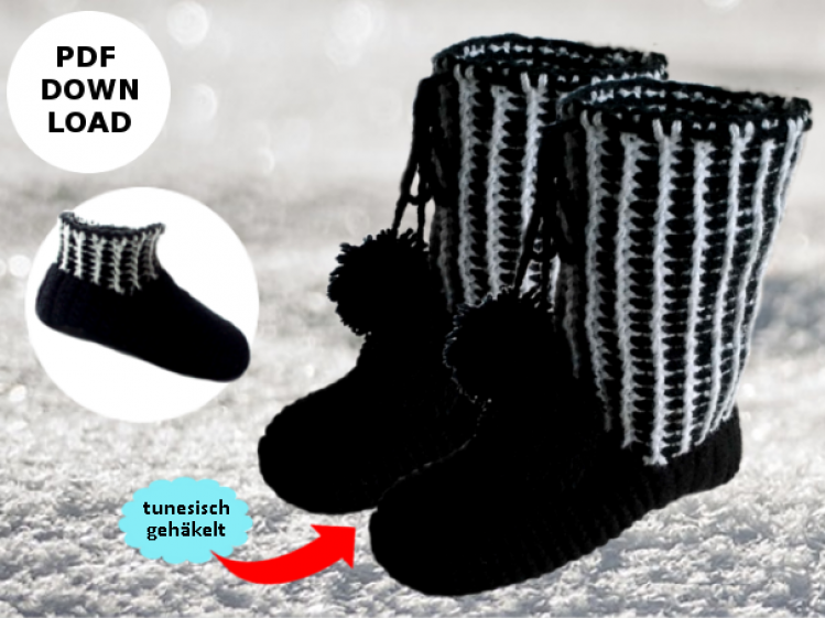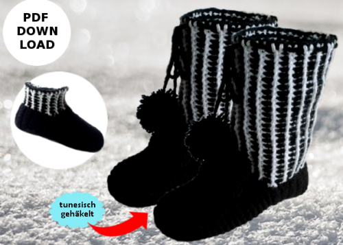 eBook # 37 HÄKELANLEITUNG Hausschuhe/Hausstiefel tunesisch gehäkelt