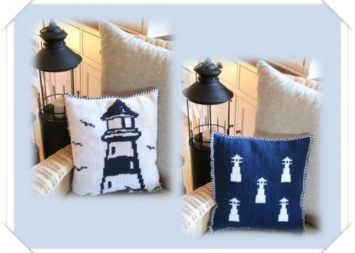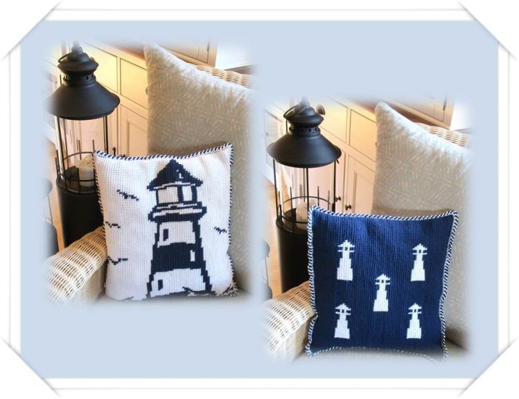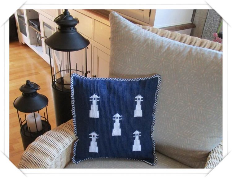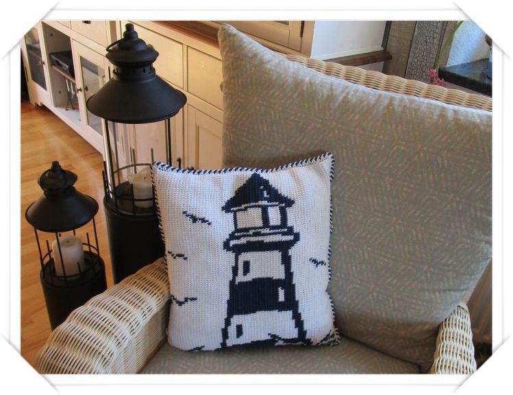 Leuchtturmkissen tunesisch gehäkelt