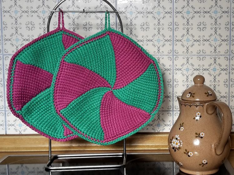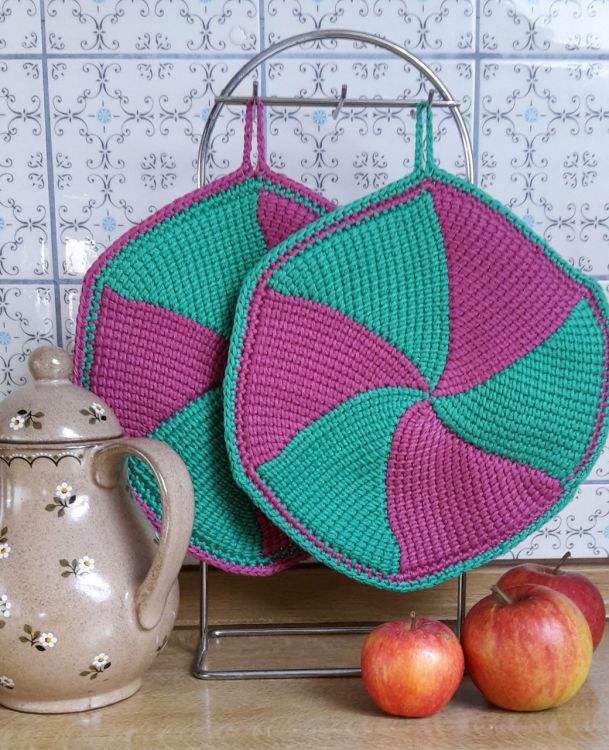 Der fertige Topflappen hat einen Durchmesser von ca 28 cm