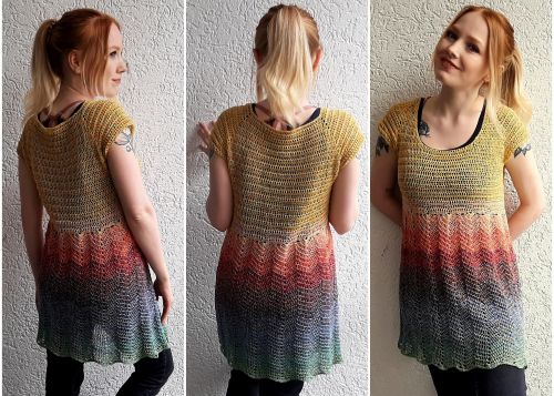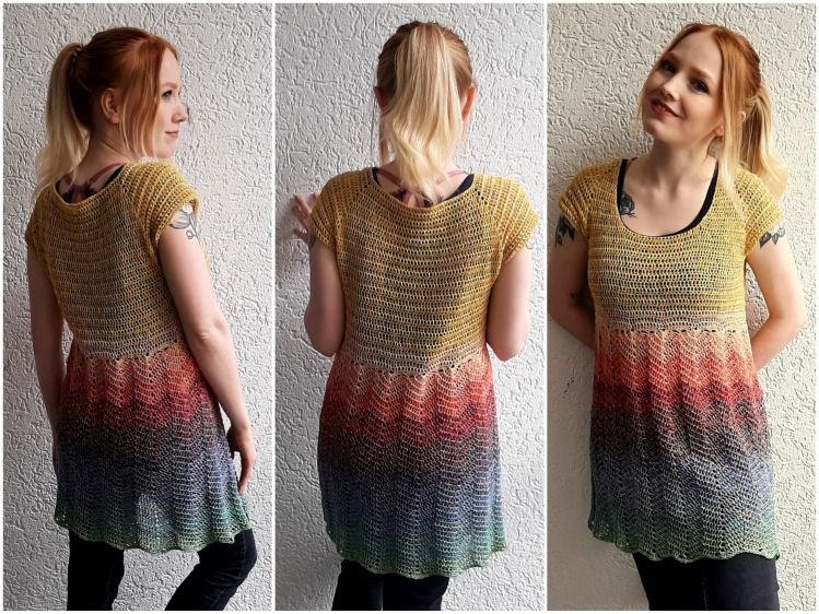 Luftig, leicht und beschwingt mit der Tunika "Sonnenschein". Dieses Oberteil kann als Shirt, Kleid oder Tunika gehäkelt werden.