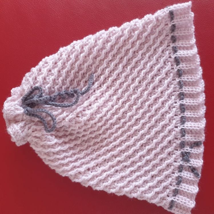 Diese Mütze wird in zwei Schritten gearbeitet.