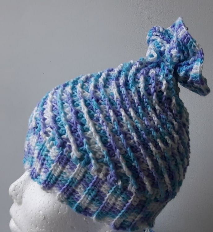 Die Größe wird komplett auf die eigene Kopfgröße angepasst, da erst das Bündchen gehäkelt wird. Sie ist für jedes Alter geeignet!