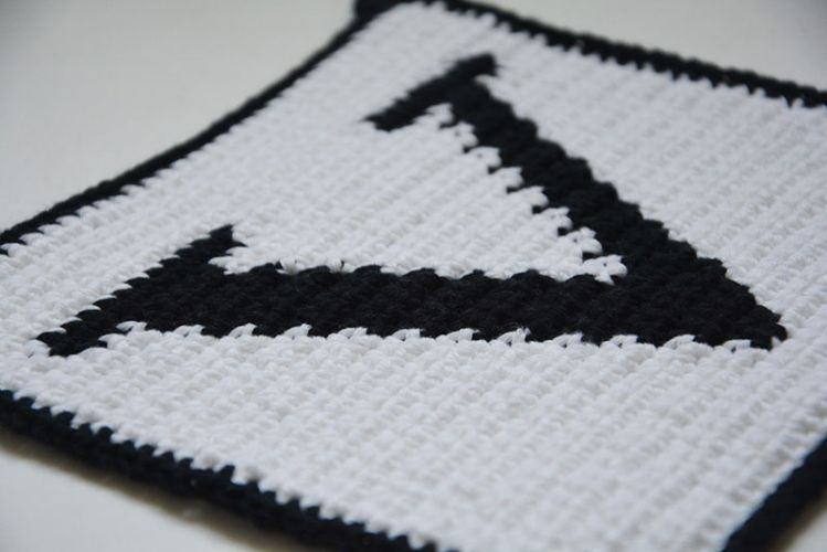 Neben der schriftlichen Anleitung für den Buchstaben-Topflappen sind ein Häkelschema in Farbe und ein Häkelschema in schwarz-weiß enthalten.