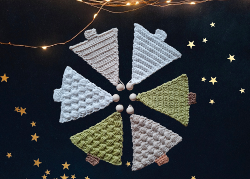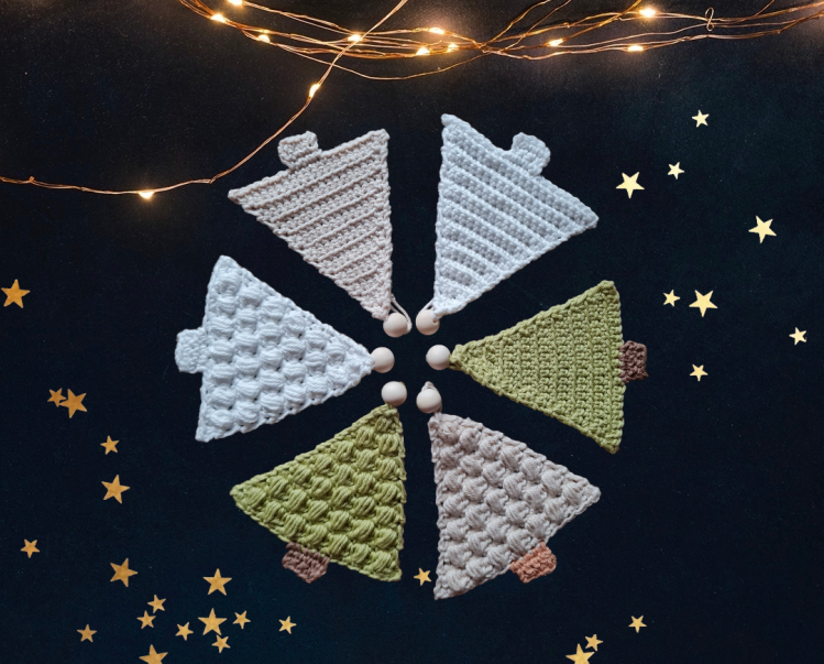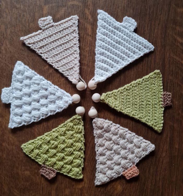 Für meine Bäumchen habe ich Rainbow Cotton von Hobbii 8/4 (je Bäumchen ca. 4g) und eine 3.0er Häkelnadel verwendet. Die Anleitung ist allerdings so geschrieben, dass ihr auch jedes andere Garn verwenden könnt. Mit meinem Garn werden die Tannenbäumchen ca. 8cm groß, können aber individuell angepasst werden.