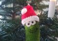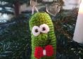 Weihnachtsgurke mit Fliege-Mütze-Krone, Anhänger, Häkel-AL