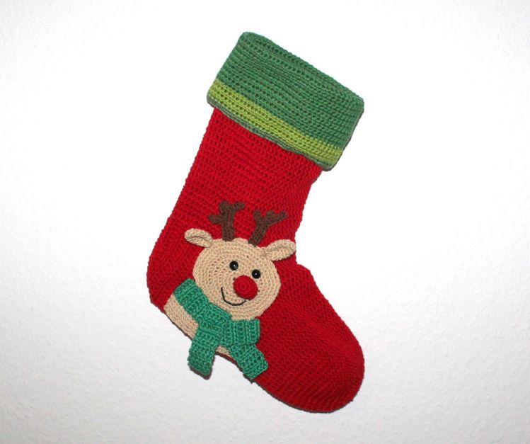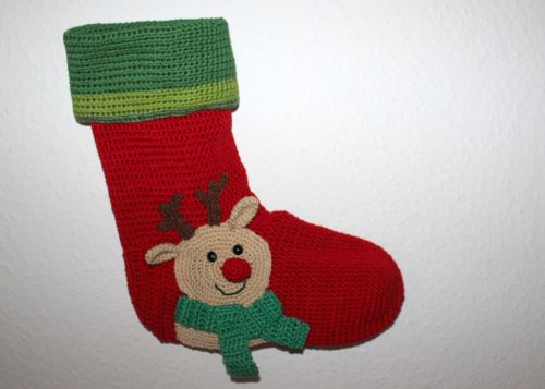Weihnachtssocken Rentier Häkelanleitung auf deutsch