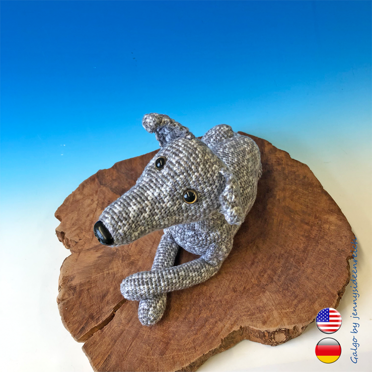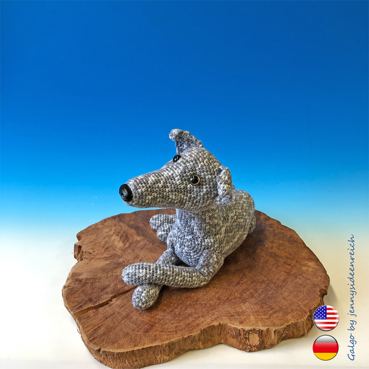 Ihr könnt hier die komplett ausformulierte Häkelanleitung zu meinem Galgo erwerben.