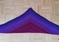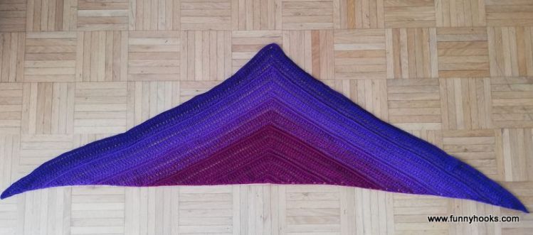 Gefertigt wurde es aus Material: Bobbel “Lila Wölkchen” 750m LL, 3 fädig (Rennratterls bunte Wollwunderwelt) Häkelnadel: NS 4 Ungespannt ergibt es fertig gearbeitet 160cm Länge und 45cm Tiefe. Es kann selbstverständlich noch länger und tiefer gehäkelt werden.