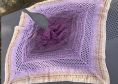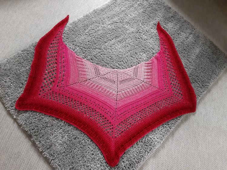 Das Tuch Ronja ist kein klassisches Dreieckstuch, sondern hat drei Spitzen und ist dadurch von der Form her im Prinzip halbrund.