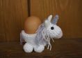 - Ca. 20g Wolle/ Garn in der Farbe weiß, für eine 3mm Häkelnadel geeignet. Ich habe 100% Baumwolle verwendet, dadurch wird der Eierbecher schön stabil.