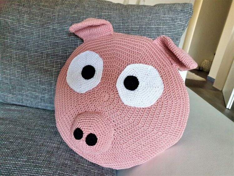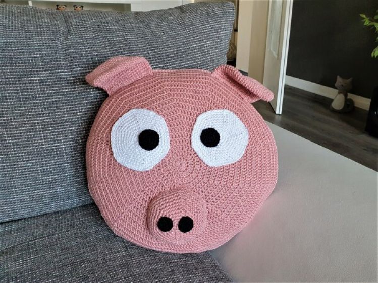 Häkelanleitung Kissen Schwein Rosalie