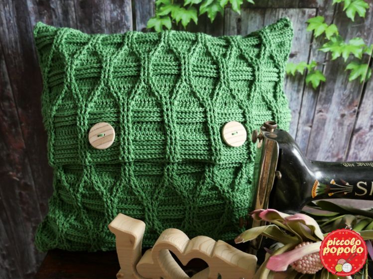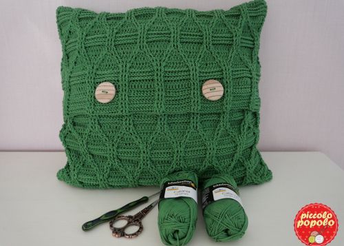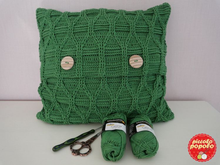 Die fertige Kissenhülle ist 40x40 cm groß. Das Muster kann aber ohne Probleme verkleinert oder vergrößert werden.