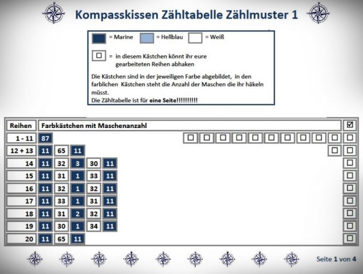 Moin, Freunde des maritimen Lebensstils, diesmal geht's zur Seefahrt mit diesem besonders schönen Kompasskissen.