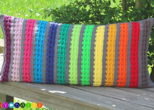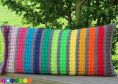 Dieses Kissen ist flauschig weich und kann wunderbar als Kuschelkissen verwendet werden. Und mit seinen schönen Regenbogenfarben eignet es sich natürlich auch als schönes Deko-Kissen. Ganz so, wie du es willst. Und zur Reinigung kannst du das Kissen gleich vollständig in die Waschmaschine geben und nach Anweisung des Wollherstellers waschen. So bleibt es lange Zeit frisch.