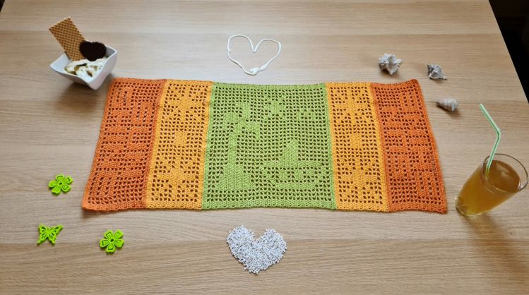 Die Anleitung besteht aus einer Beschreibung bestimmter Schritte mit Bildern und einem Zählmuster. Der Läufer ist auch für Anfänger geeignet.