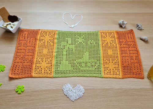 Der Läufer ist mit Baumwollgarn gehäkelt. Näheres in der Anleitung.