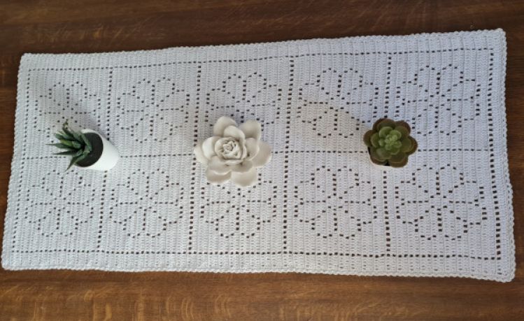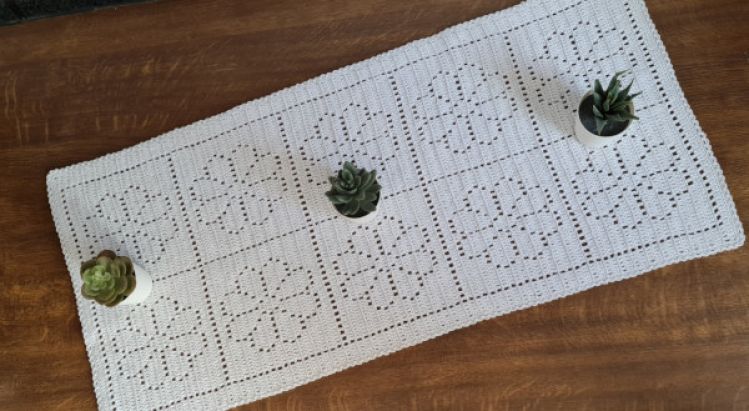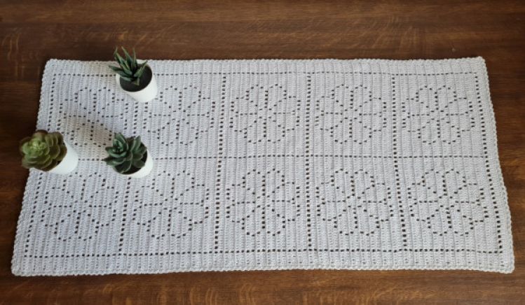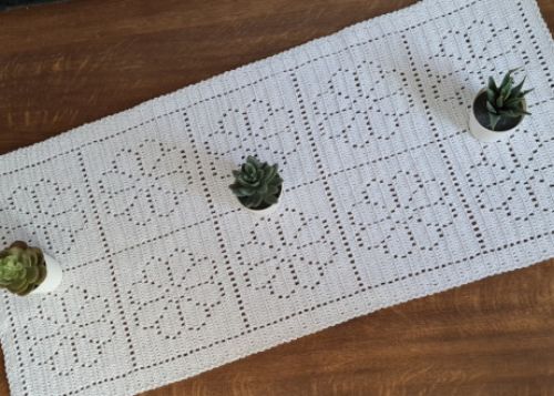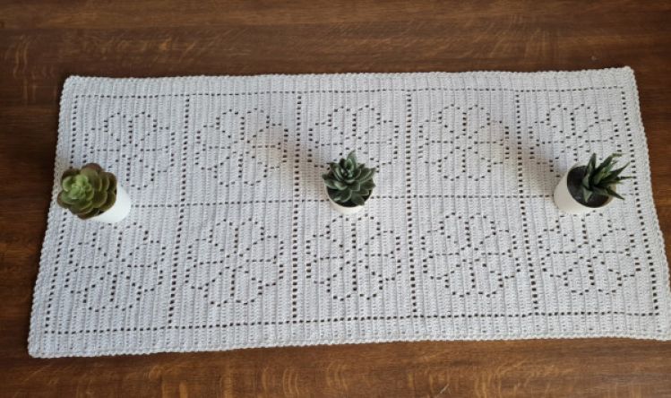 Wie ihr diesen blumigen Tischläufer häkelt, zeige ich euch in der Anleitung. Er wird nicht, wie im ersten Moment vielleicht vermutet aus einzelnen Grannys, sondern an einem Stück gehäkelt. Ihr könnt den Tischläufer einfach in der Länge anpassen. So eignet er sich nicht nur für Tische, sondern auch für Kommoden oder Sideboards.
