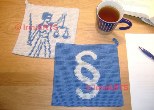 Mit dieser detaillierten Schritt-für-Schritt-Anleitung kann man Topflappen häkeln, die auf beiden Seiten unterschiedliche juristische Motive zeigen – von Paragrafen bis hin zu Justitia. Dank der Doubleface-Technik, bei der beide Seiten des Topflappens gleichwertig und gleichzeitig wunderschön sind, entsteht ein Design, das sowohl funktional als auch ästhetisch überzeugt.