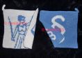 An Material benötigen Sie für ein Paar Topflappen je 2 Knäul Wolle (z. B. Schachenmayr Catania oder vergleichbare Qualität) der gewünschten Farben, hier Nebel (grau) und Monaco (blau). Außerdem braucht man natürlich eine zur Dicke der Wolle passende Häkelnadel. Die fertigen Topflappen haben eine Größe von ca. 20 x 21 cm.