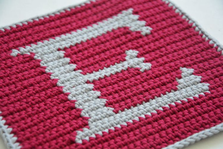 Neben der schriftlichen Anleitung für den Buchstaben-Topflappen sind ein Häkelschema in Farbe und ein Häkelschema in schwarz-weiß enthalten.