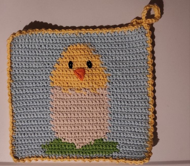 Dieser Topflappen mit dem niedlichen Küken darf in Deiner Küche nicht fehlen, besonders, wenn Du wie ich gerne saisonal dekorierst.