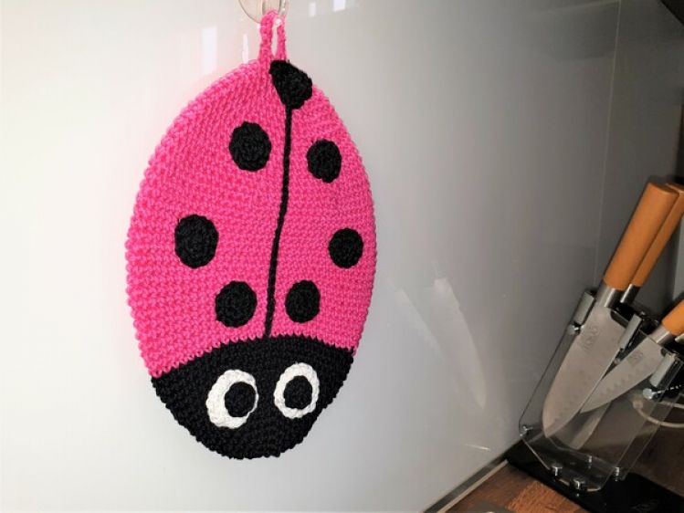 Häkelanleitung Topflappen Marienkäfer Super leichte Anleitung für mein Marienkäferchen. Sehr geeignet für Anfänger. Ist bestimmt eine super Geschenkidee für Ostern. Was Du können solltest und was Du bekommst Leichte Anleitung. Schritt für Schritt erklärt. Größenangaben Höhe 25 cm Breite 18 cm Was Du für Material brauchst Sie benötigen: 40g Schachenmayr Catania Rot oder Pink 30g Schachenmayr Catania Schwarz Rest von Weiß Häkelnadel Nr.3 Vernähnadel, Nähnadel und Schere Nähgarn in Weiß und Schwarz