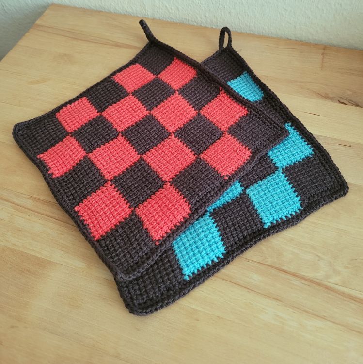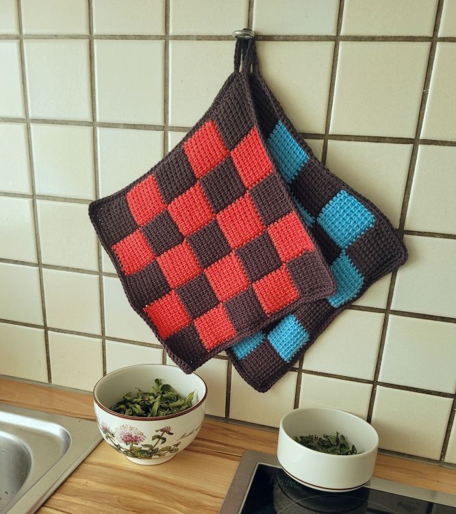 Wenn du einmal etwas ganz Besonderes häkeln möchtest, das auch ein ideales kleines Geschenk ist, dann sind diese Topflappen genau das Richtige. Die Technik vereint tunesisches häkeln, arbeiten von Ecke zu Ecke und eine Farbwahl, die du passend für deine Küche aussuchen kannst. In meiner Anleitung ist alles genau beschrieben, wie immer ohne Abkürzungen, dafür mit vielen Bildern. Und es gibt eine schematische Darstellung des Musters für die Übersicht. Viel Freude beim Nacharbeiten wünscht dir