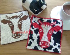 Häkelanleitung Doubleface-Topflappen Kuh (2- oder 3-farbig)