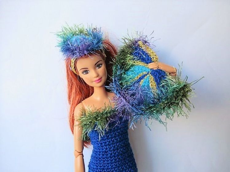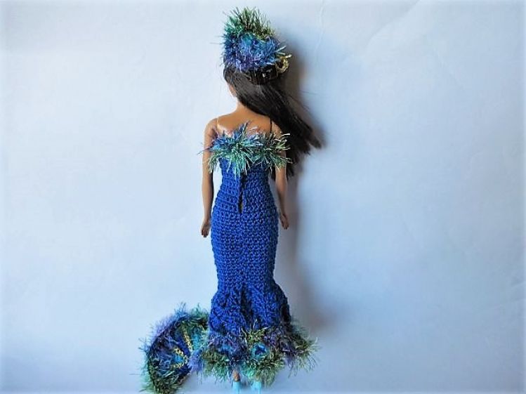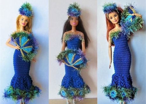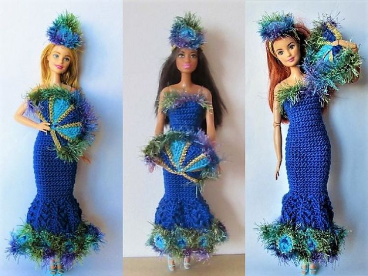 Häkelanleitung Ballkleid Pfauenprinzessin für kleine Puppen