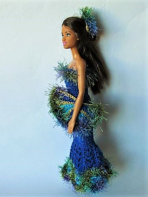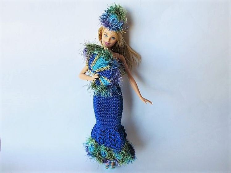 Pfauenprinzessin - ein ganz besonderes Kleid für kleine Anziehpuppen passend zur Ballsaison! Mit dem tollen Kopfschmuck und dem Fächer wirkt Barbie, Steffie (oder wie das Püppchen auch heißt) geheimnisvoll und attraktiv.