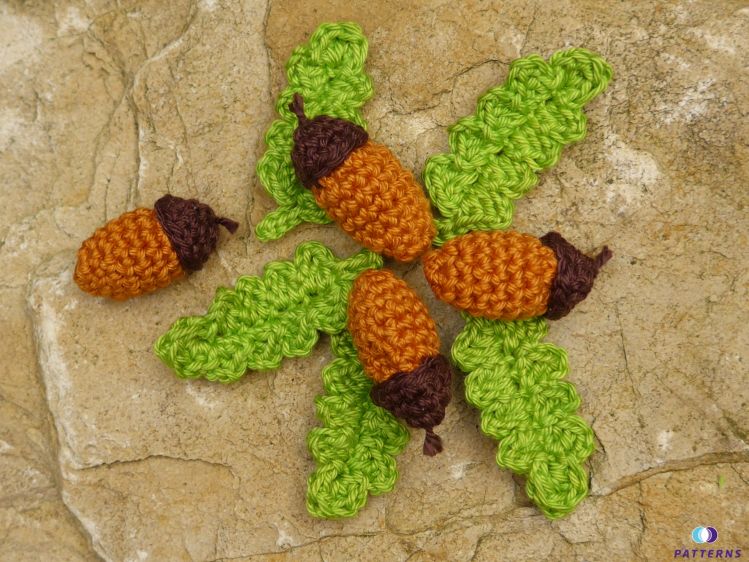 Diese Eicheln sind eine tolle Streudekoration. Sie eignen sich perfekt für die Restewolleverwertung. In Gruppen wirken sie besonders gut. Die Blätter runden die Deko ab. Die Blätter können auch herbstlich bunt gehäkelt werden.