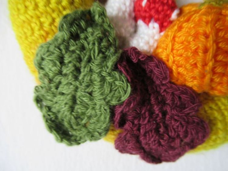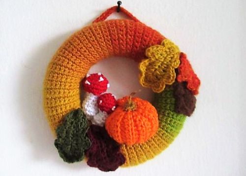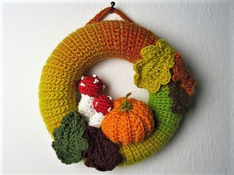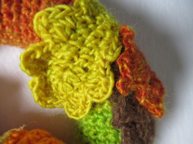 Diesen kleinen Türkranz (Durchmesser 12 cm) kannst du aus Wollresten in leuchtend bunten Herbstfarben häkeln. Er kann als Tür-, Fenster- oder Wandschmuck verwendet werden.