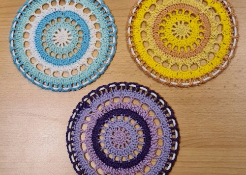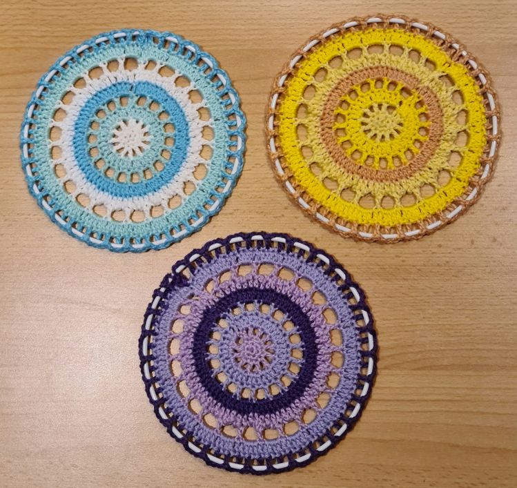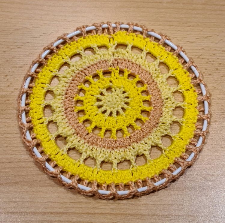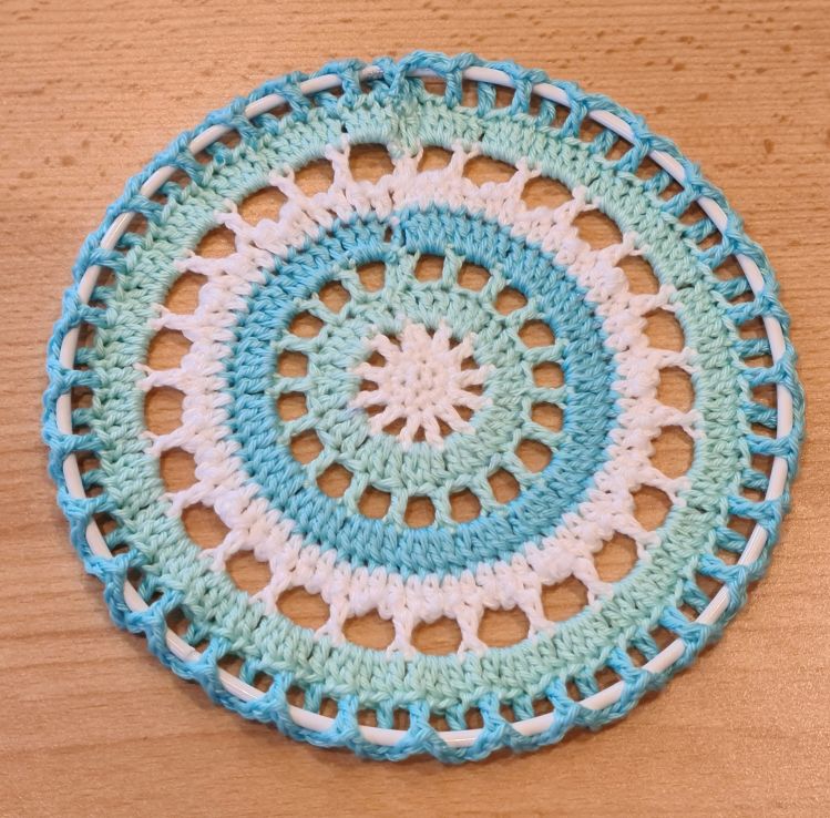 Für das Mandala habe ich Baumwollgarn benutzt z.B. Schachenmayr Catania, mit einer 3,5 mm Häkelnadel.
