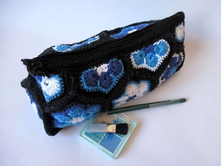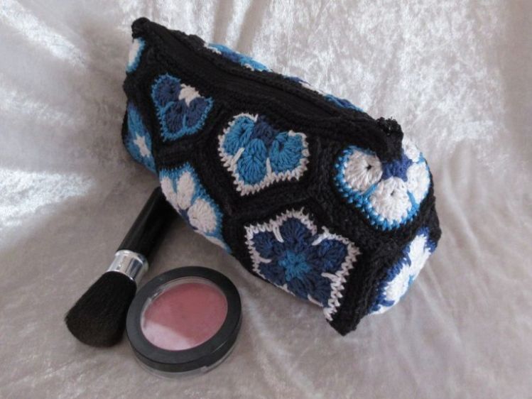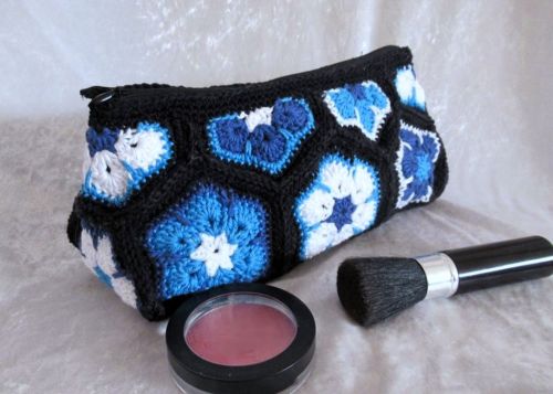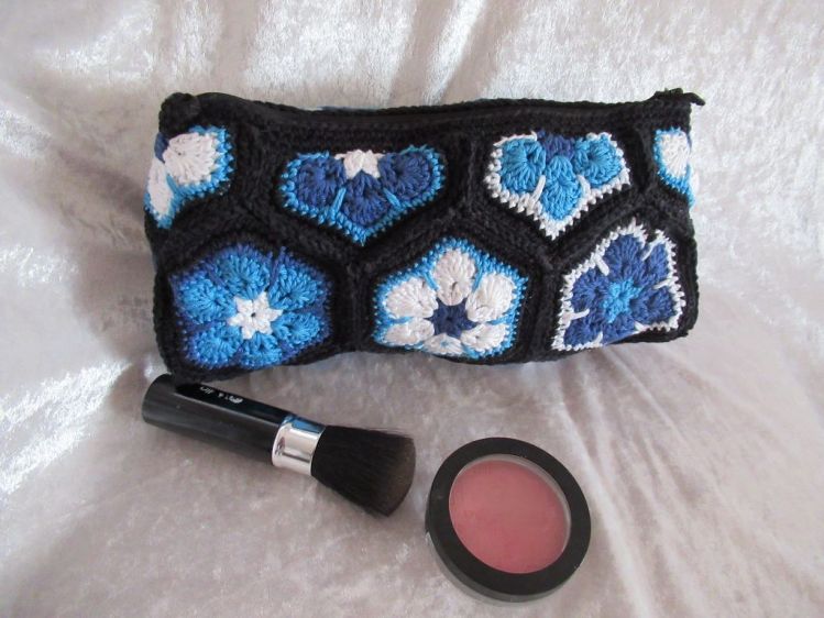 Das Kosmetiktäschchen mit Reißverschluss besteht aus einzelnen Secjsecken mit Blumenmuster (sog. "African Flowers"), die am Schluss zusammengehäkelt werden. Das Täschchen hat eine praktische größe vpn 23 cm Länge und 12 cm Höhe.