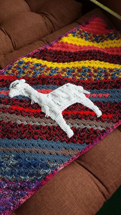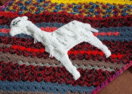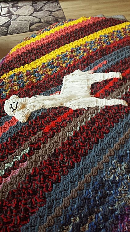 Eine tolle Wollresteverwertung! Du brauchst 700 gr Wollreste, davon 50 gr Wolle in Weiß. Verwendet habe ich Wolle in Stärke 3-4, gehäkelt habe ich mit einer Nadel in Stärke 3,5. Ich empfehle Acrylwolle, da sie sich leicht waschen und trocknen lässt.