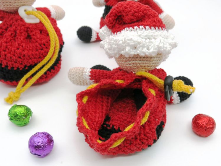 Diese niedlichen Weihnachtsmann-Beutel lassen sich mit Süßem oder anderen kleinen Überraschungen befüllen.