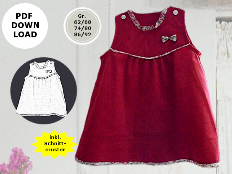Nähanleitung und Schnittmuster für ein hübsches Kleidchen aus super weichem Babycord. Super praktisch, super süß und sehr einfach zu nähen.