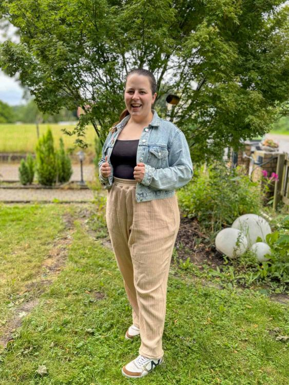 • Als Material eignen sich Hosenstoffe wie z.B. Baumwollköper, Baumwolltwill, Leinen-Mischgewebe, Leinen, Jeans (nicht zu dick), Cord, und viele weitere (max. 3% Elasthan)