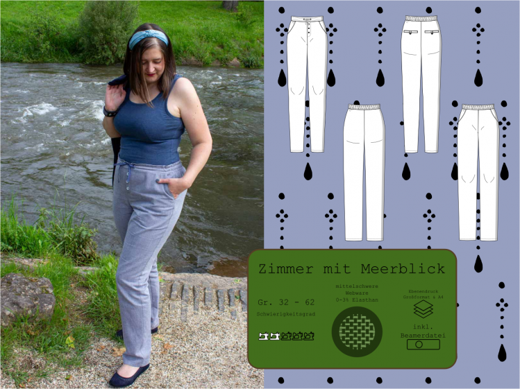 Zeit für neue Sommergarderobe. Eine bequeme und dennoch schicke Hose soll es sein, die für unseren Urlaub im Sommer einige Anlässe abdeckt, sodass der Koffer nicht überfüllt werden muss. Eine Hose, die sowohl am Strand also auch auf dem Boot, einem abendlichen Dinner im gehobenen Restaurant oder für einen Städtebummel geeignet ist. Dieser Schnitt beinhaltet eine Hose mit zwei Beinweiten, Leisten-Gesäßtaschen, französischen Eingriffstaschen, einem optionalen Fake-Verschluss und zwei bequemen Bundvarianten mit Gummizug und optionalem Tunnelzug.