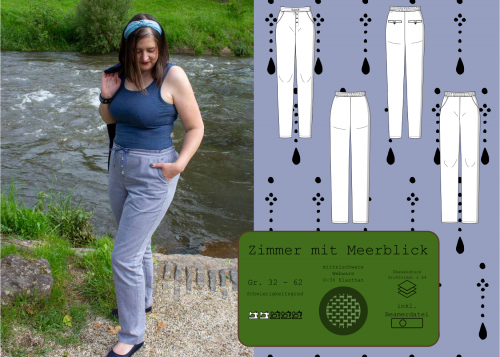 Zusammengefasst: Dieser Schnitt bietet dir eine bequeme Webwarehose mit 2 Beinweiten und 2 Bundvarianten. Eingriffstaschen und Gesäßleistentaschen, sowie der optionale Fake-Verschluss runden das Design ab.